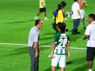 (試合後、スラチャイ元監督と談笑する猿田選手)